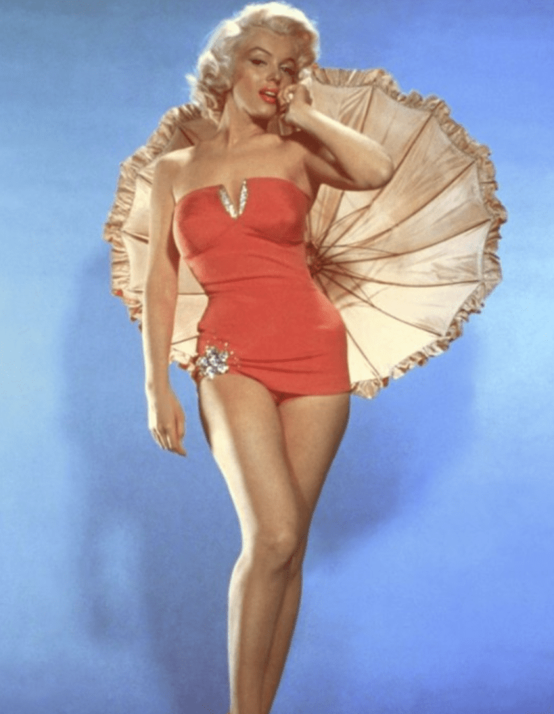 The red sequined swimsuit became one of Marilyn Monroe’s most famous images. In the film, she plays Paula, a woman with poor eyesight who refuses to wear glasses to preserve her image.